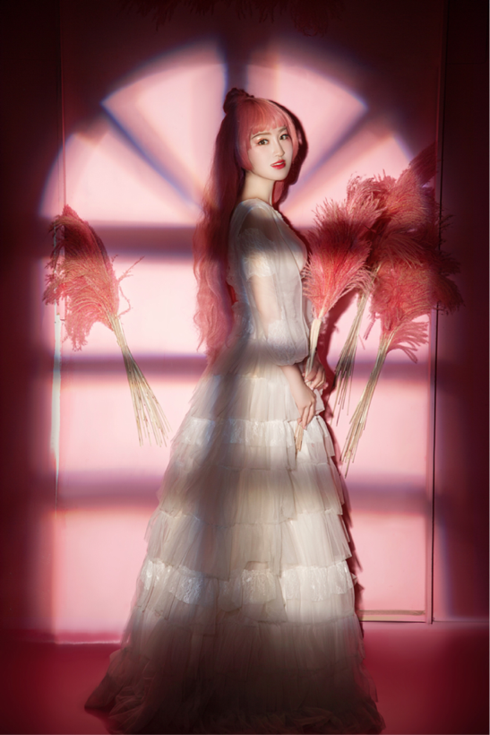 韓競儀一身粉色魚尾裙,像極了人魚公主